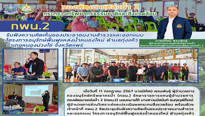 กพน.2 รับฟังความคิดเห็นของประชาชนงานสำรวจและออกแบบ โครงการอนุรักษ์ฟื้นฟูแหล่งน้ำหนองใหม่ จ.แพร่