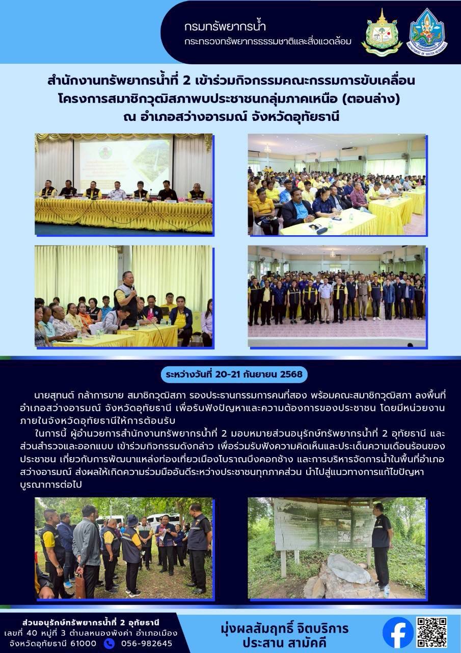 สำนักงานทรัพยากรน้ำที่ 2 เข้าร่วมกิจกรรมคณะกรรมการขับเคลื่อน โครงการสมาชิกวุฒิสภาพบประชาชนกลุ่มภาคเหนือ (ตอนล่าง) ณ อำเภอสว่างอารมณ์ จังหวัดอุทัยธานี