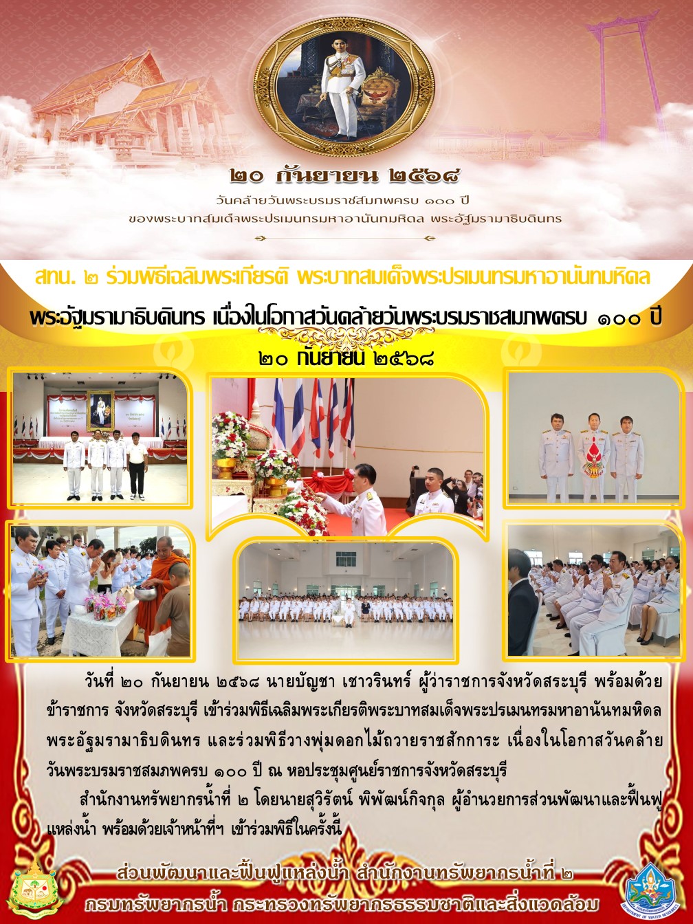 สทน. 2 ร่วมพิธีเฉลิมพระเกียรติพระบาทสมเด็จพระปรเมนทรมหาอานันทมหิดล พระอัฐมรามาธิบดินทร เนื่องในโอกาสวันคล้ายวันพระบรมราชสมภพครบ 100 ปี 20 กันยายน 2568