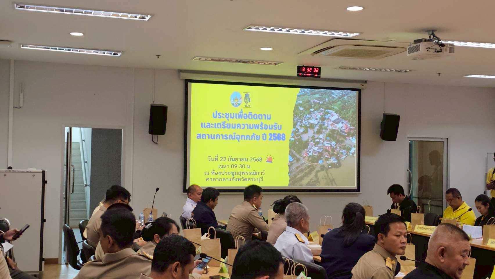 นายบัญชา เชาวรินทร์ ผู้ว่าราชการจังหวัดสระบุรี เป็นประธานการประชุมติดตามและเตรียมความพร้อมรับสถานการณ์อุทกภัย ปี 2568 เพื่อเตรียมความพร้อมรับสถานการณ์อุทกภัย ณ ห้องประชุมสุพรรณิการ์ ชั้น 2 (ฝั่งอ่างเก็บน้ำ) ศาลากลางจังหวัดสระบุรี ตำบลปากเพรียว อำเภอเมืองสระบุรี จังหวัดสระบุรี