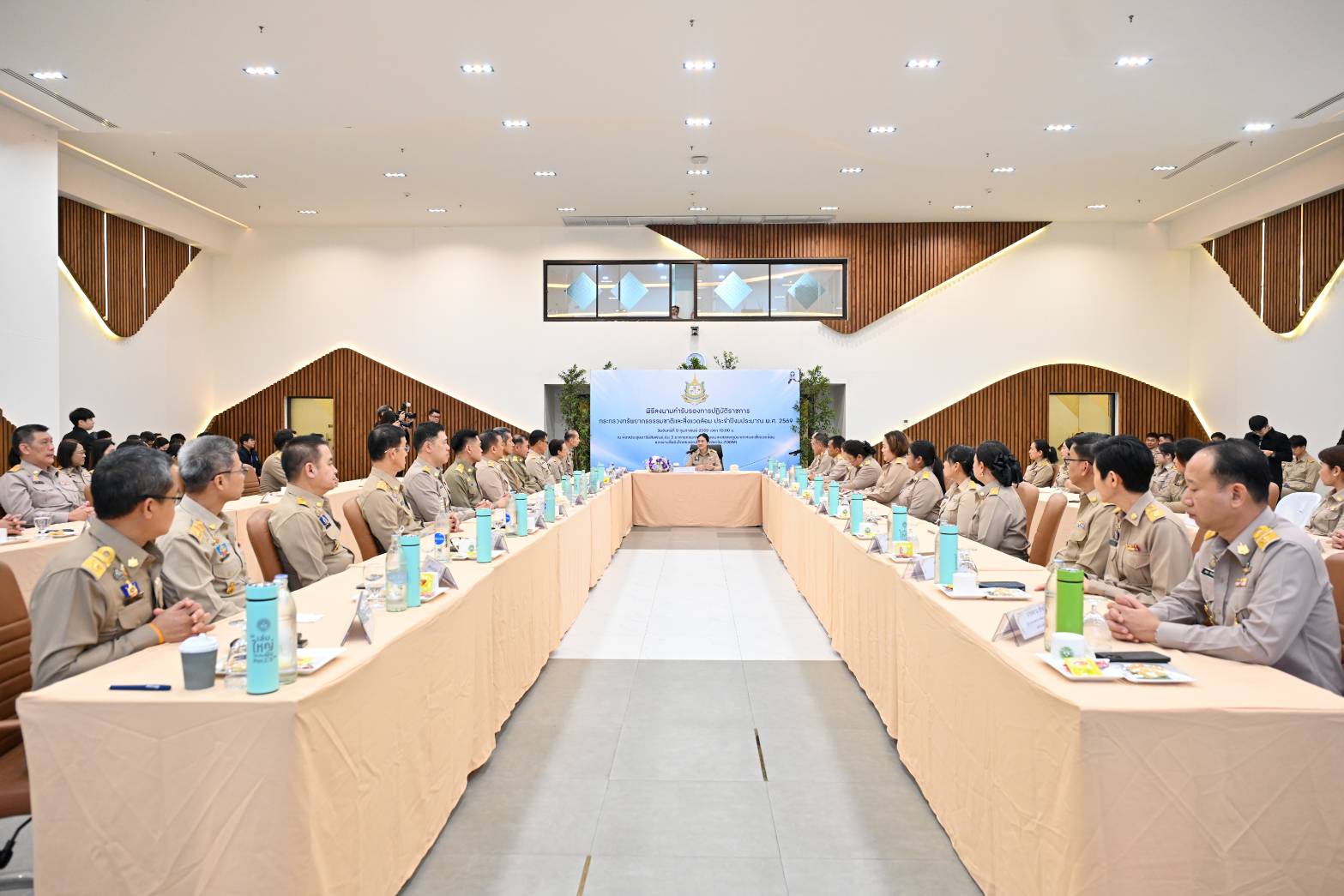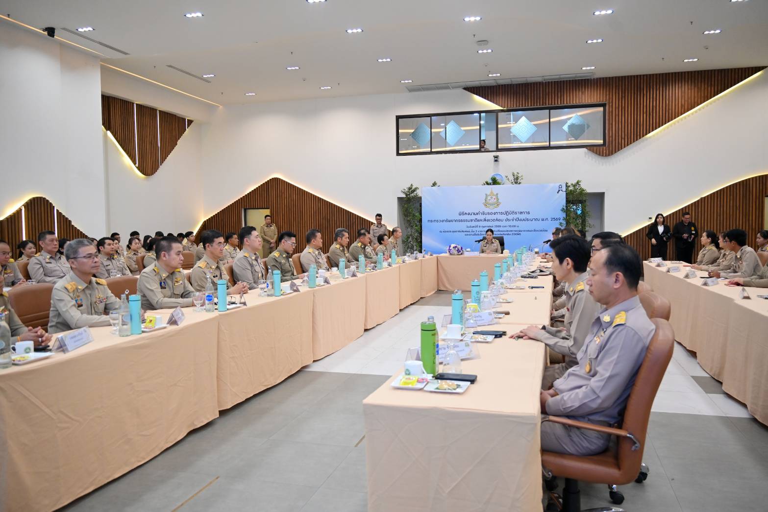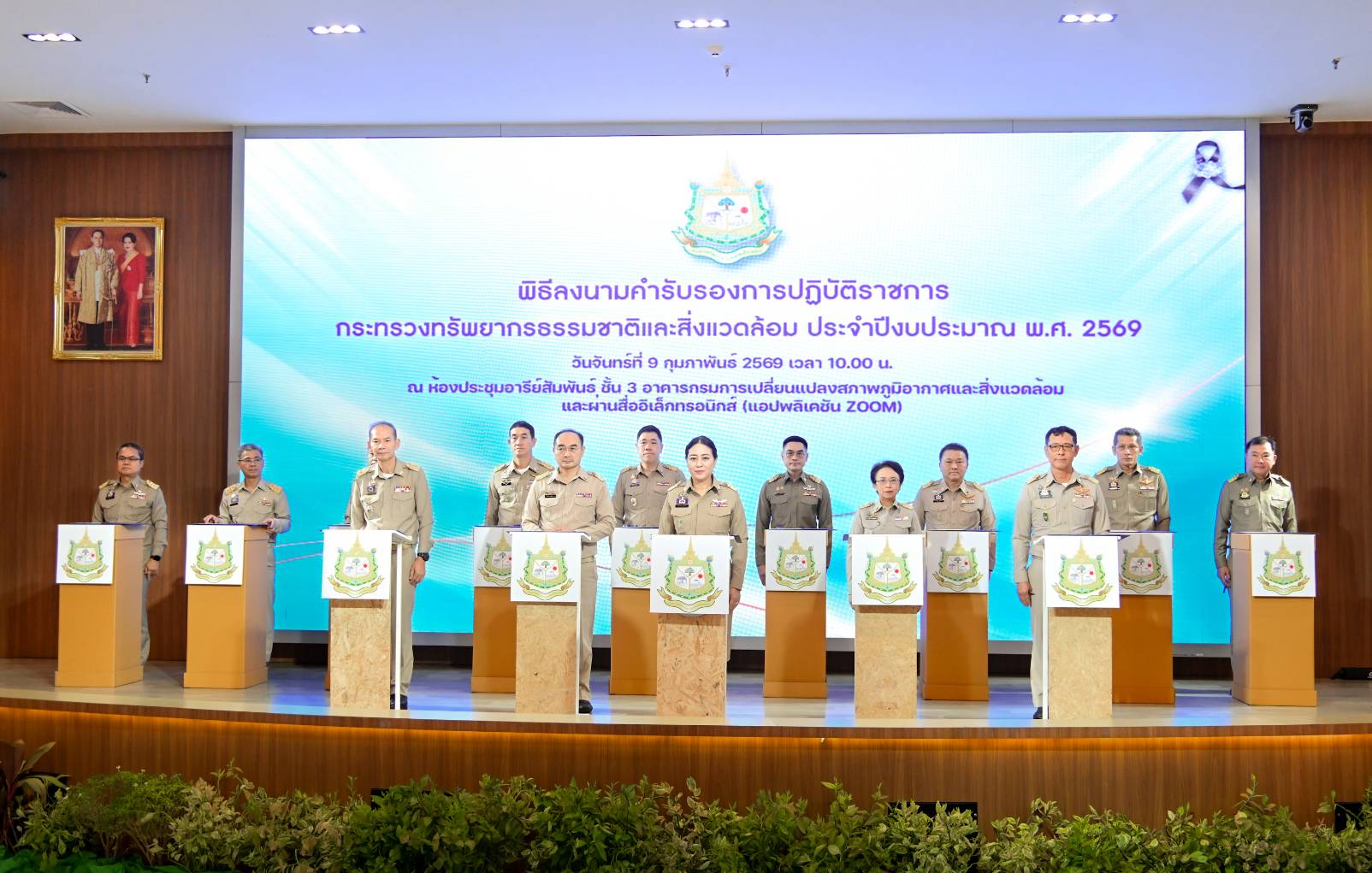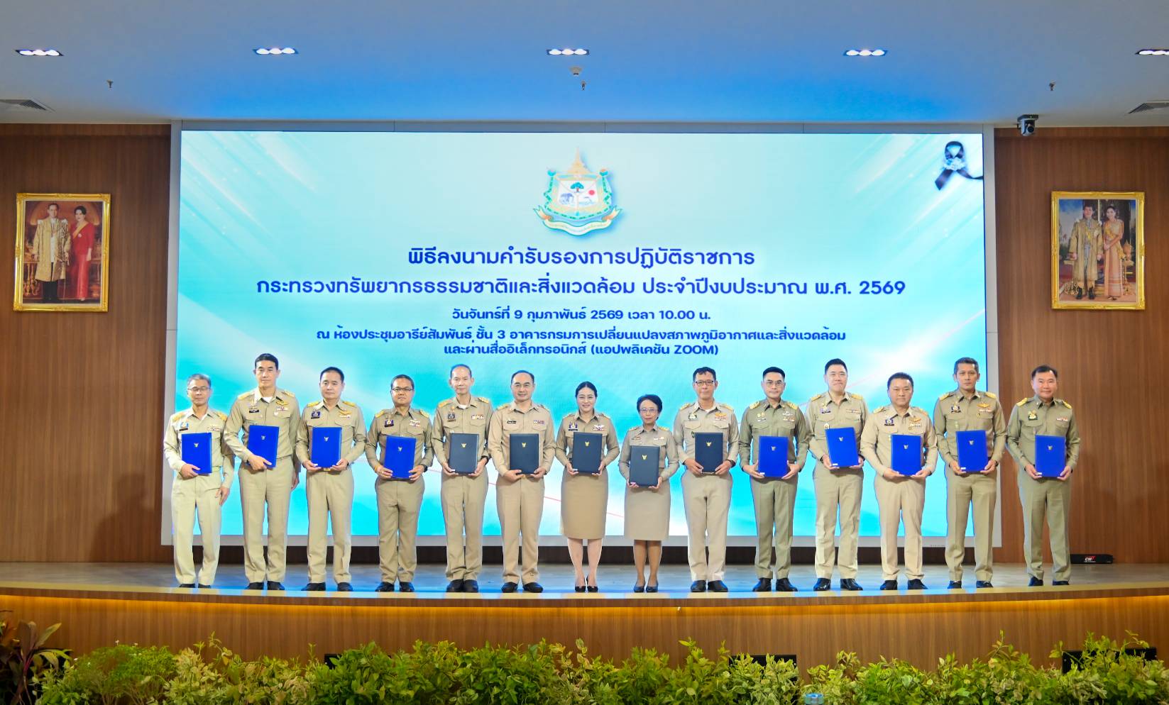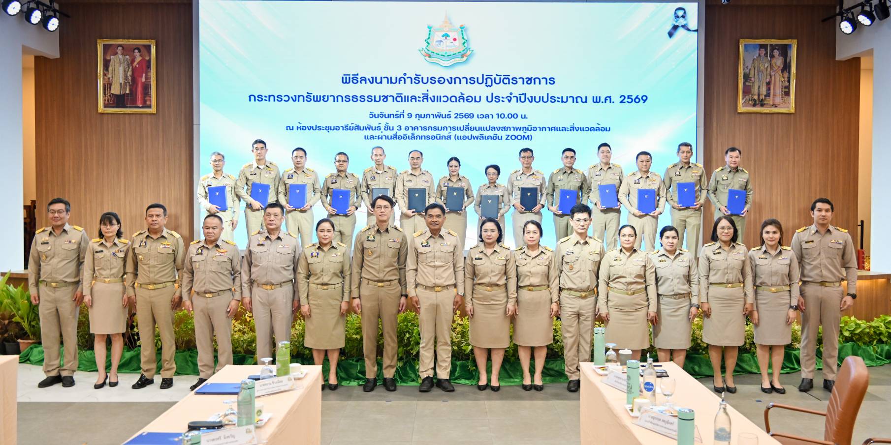 วันนี้ (9 กุมภาพันธ์ 2569) ดร.รวีวรรณ ภูริเดช ปลัดกระทรวงทรัพยากรธรรมชาติและสิ่งแวดล้อม เป็นประธานเปิดและมอบนโยบายในพิธีลงนามคำรับรองการปฏิบัติราชการกระทรวงทรัพยากรธรรมชาติและสิ่งแวดล้อม ประจำปีงบประมาณ พ.ศ. 2569 โดยมีผู้บริหารในสังกัดกระทรวงฯ นายธีระชุณ บุญสิทธิ์ อธิบดีกรมทรัพยากรน้ำ นายเวสารัช โสภณดิเรกรัตน์ รองอธิบดีฯ และผู้บริหารกรมฯ เข้าร่วมพิธี ณ ห้องประชุมอารีย์สัมพันธ์ กรมการเปลี่ยนแปลงสภาพภูมิอากาศและสิ่งแวดล้อม