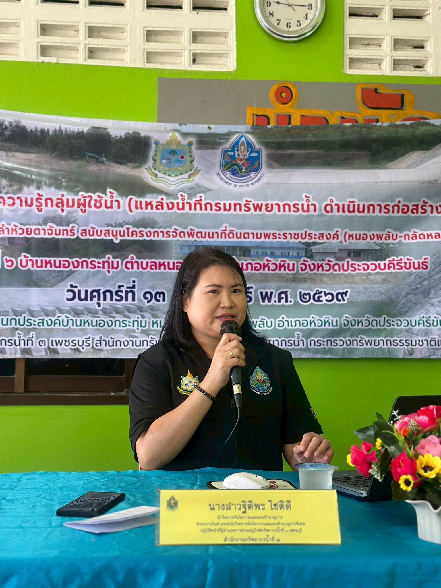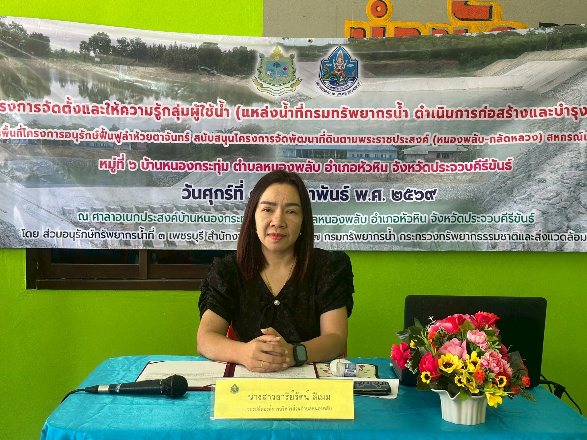 วันที่ 13 กุมภาพันธ์ 2569 นายอนันต์ โพธิ์พันธุ์ ผู้อำนวยการสำนักงานทรัพยากรน้ำที่ 7 มอบหมายให้ส่วนอนุรักษ์ทรัพยากรน้ำที่ 3 เพชรบุรี จัดโครงการจัดตั้งและให้ความรู้กลุ่มผู้ใช้น้ำ (แหล่งน้ำที่กรมทรัพยากรน้ำ ดำเนินการก่อสร้างและบำรุงรักษา) ในพื้นที่โครงการอนุรักษ์ฟื้นฟูลำห้วยตาจันทร์ สนับสนุนโครงการจัดพัฒนาที่ดินตามพระราชประสงค์ (หนองพลับ-กลัดหลวง) สหกรณ์แห่งที่ 2 หมู่ที่ 6 บ้านหนองกระทุ่ม ตำบลหนองพลับอำเภอหัวหิน จังหวัดประจวบคีรีขันธ์ โดยมีนางสาวอารีย์รัตน์ สีเมฆ รองปลัดองค์การบริหารส่วนตำบลหนองพลับเป็นประธานเปิดโครงการ