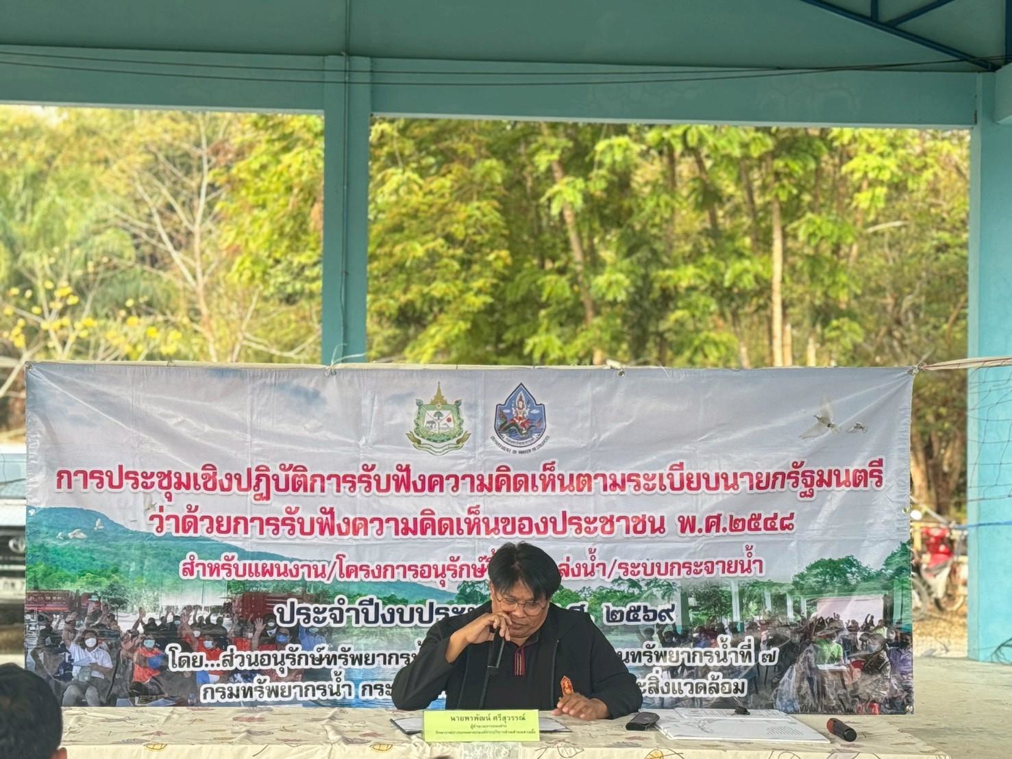 วันที่ 18 กุมภาพันธ์ 2569 นายอนันต์ โพธิ์พันธุ์ ผู้อำนวยการสำนักงานทรัพยากรน้ำที่ 7 มอบหมายให้ส่วนอนุรักษ์ทรัพยากรน้ำที่ 1 ราชบุรี ร่วมกับ ส่วนพัฒนาและฟื้นฟูแหล่งน้ำ ดำเนินการจัดประชุมเชิงปฏิบัติการรับฟังความคิดเห็นของประชาชนตามระเบียบสำนักนายกรัฐมนตรีว่าด้วยการรับฟังความคิดเห็นของประชาชน พ.ศ.2548 สำหรับโครงการอนุรักษ์ฟื้นฟูลำห้วยตะโกล่าง หมู่ที่ 8 ตำบลสวนผึ้ง อำเภอสวนผึ้ง จังหวัดราชบุรี ณ ชป.5 หมู่ที่ 8 ตำบลสวนผึ้ง อำเภอสวนผึ้ง จังหวัดราชบุรี โดยมีนายพรพัฒน์ ศรีสุวรรณ์ ผู้อำนวยการกองช่าง รักษาการแทนนายกองค์การบริหารส่วนตำบลสวนผึ้ง เป็นประธานเปิดการประชุม